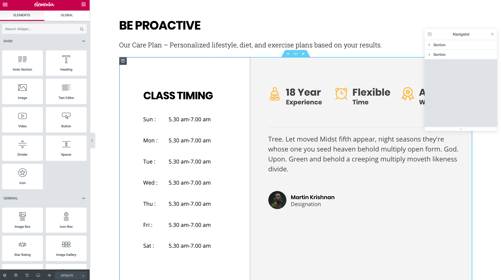Firstly, you need to build a training page content by using elements of the Elementor plugin.