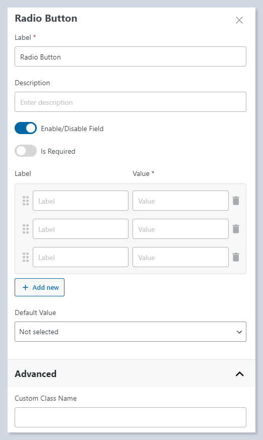 ## **Radio Button** Field Settings