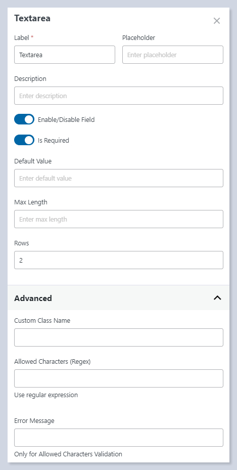 ## **Textarea** Field Settings