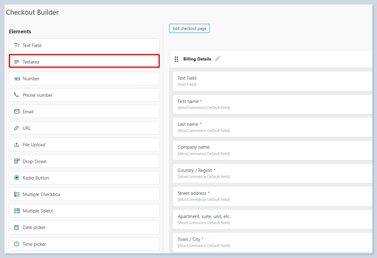 * **Enable/Disable Field** – Allows you to enable or disable the field based on your needs. If it is disabled, the element will not be displayed in the checkout form, you can enable it anytime from the checkout builder according to your needs.