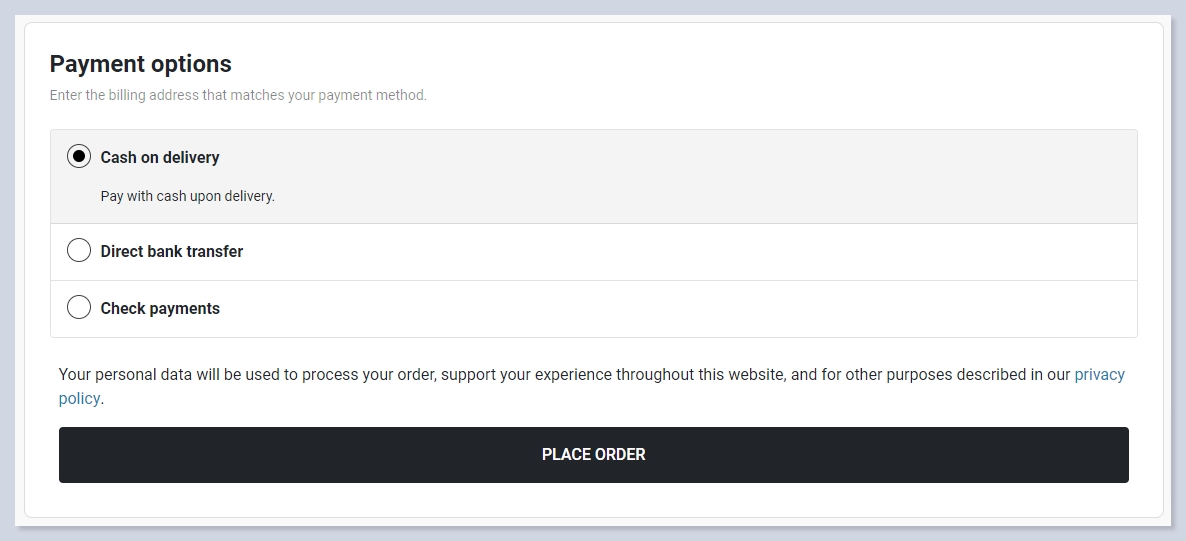 There is also an availability to change the text of the Checkout Button ('Place Order' in the previous screenshot).