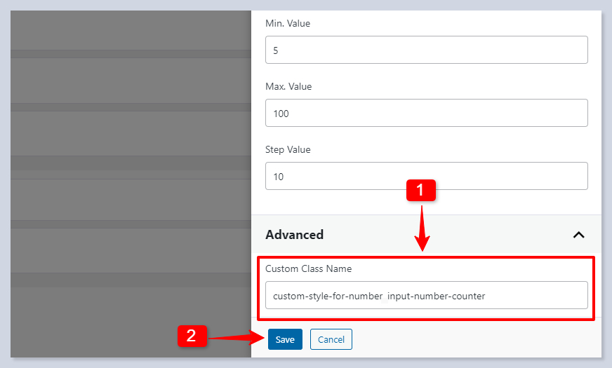 The **Custom Classes** setting in the **CCFBW** plugin allows users to customize the appearance of elements by adding **CSS classes.** This feature provides flexibility for users to style elements according to their website’s design.