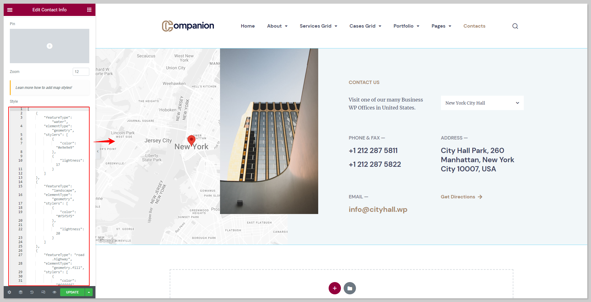 You can follow the [Google Maps Styles manual](https://docs.stylemixthemes.com/companion-theme-documentation/integrations/google-maps#google-maps-styles) to create custom Map styles.