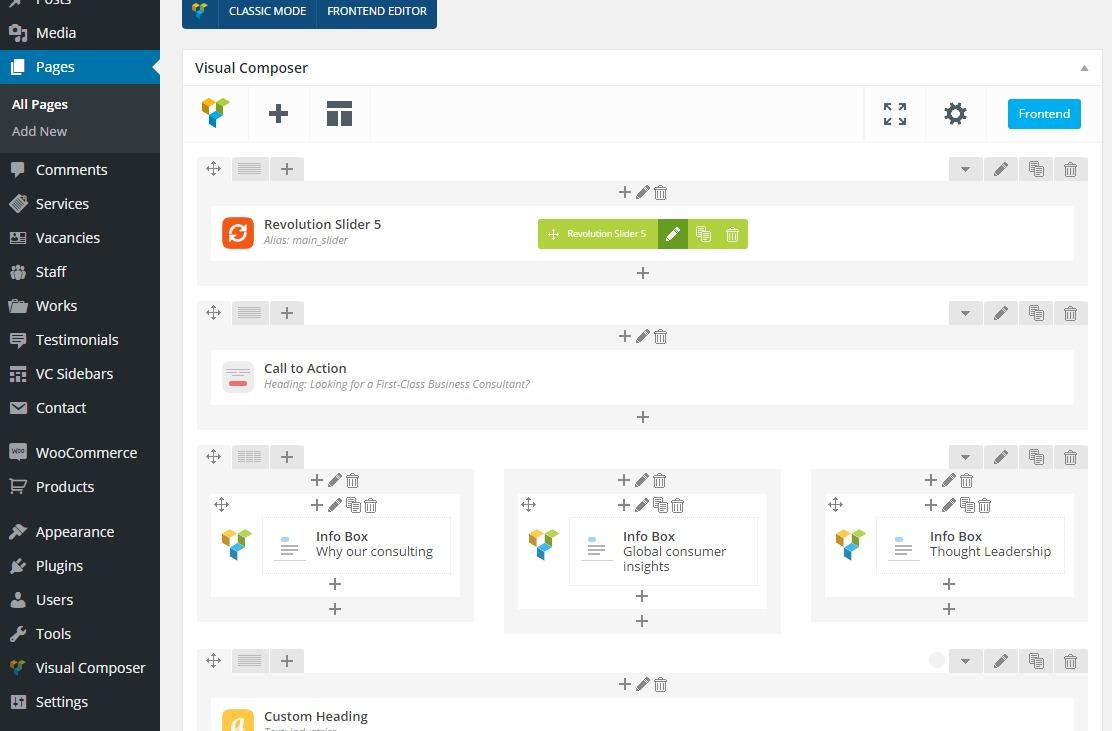 All pages can be created as simple content pages or built by means of WPBakery page builder and Elementor page builder. You will need to first set up the page and then add and set up content blocks.