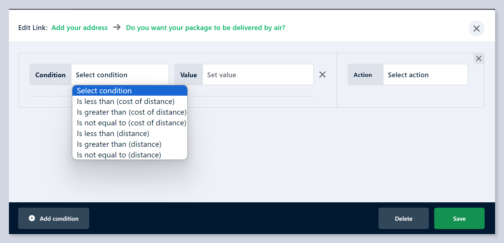 4. Choose one of the Condition options available.