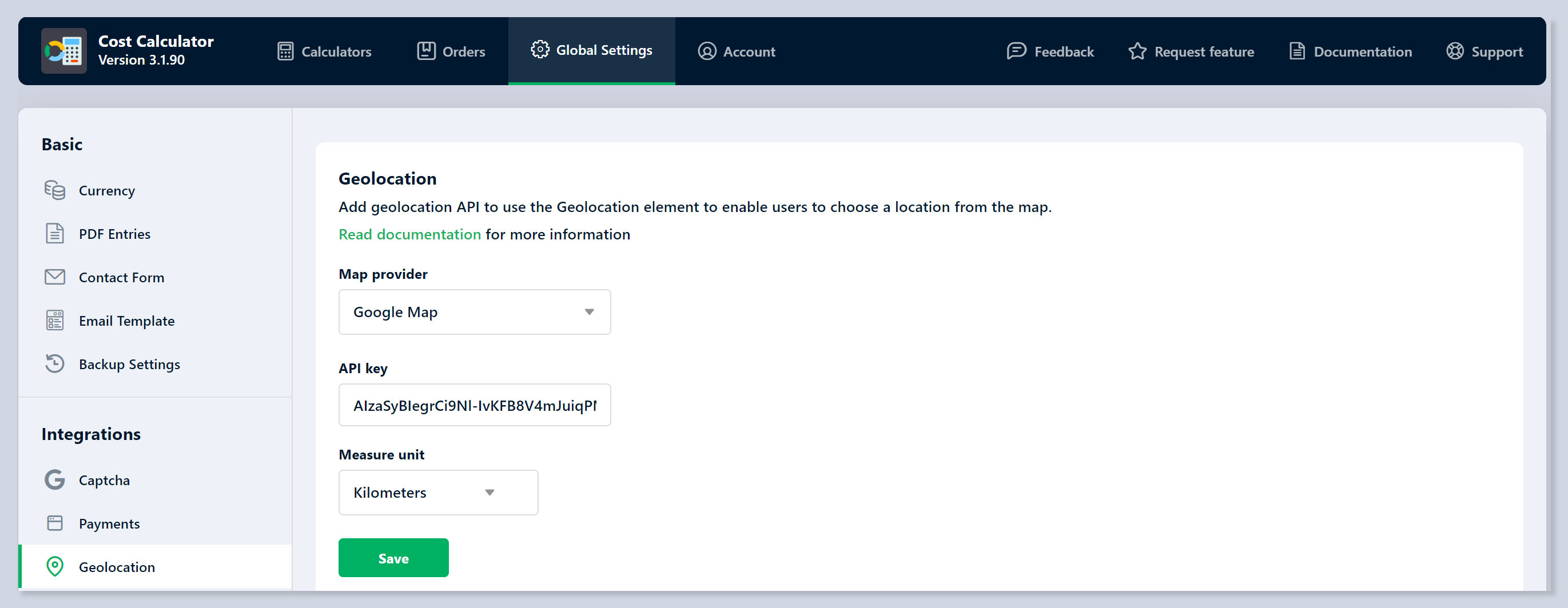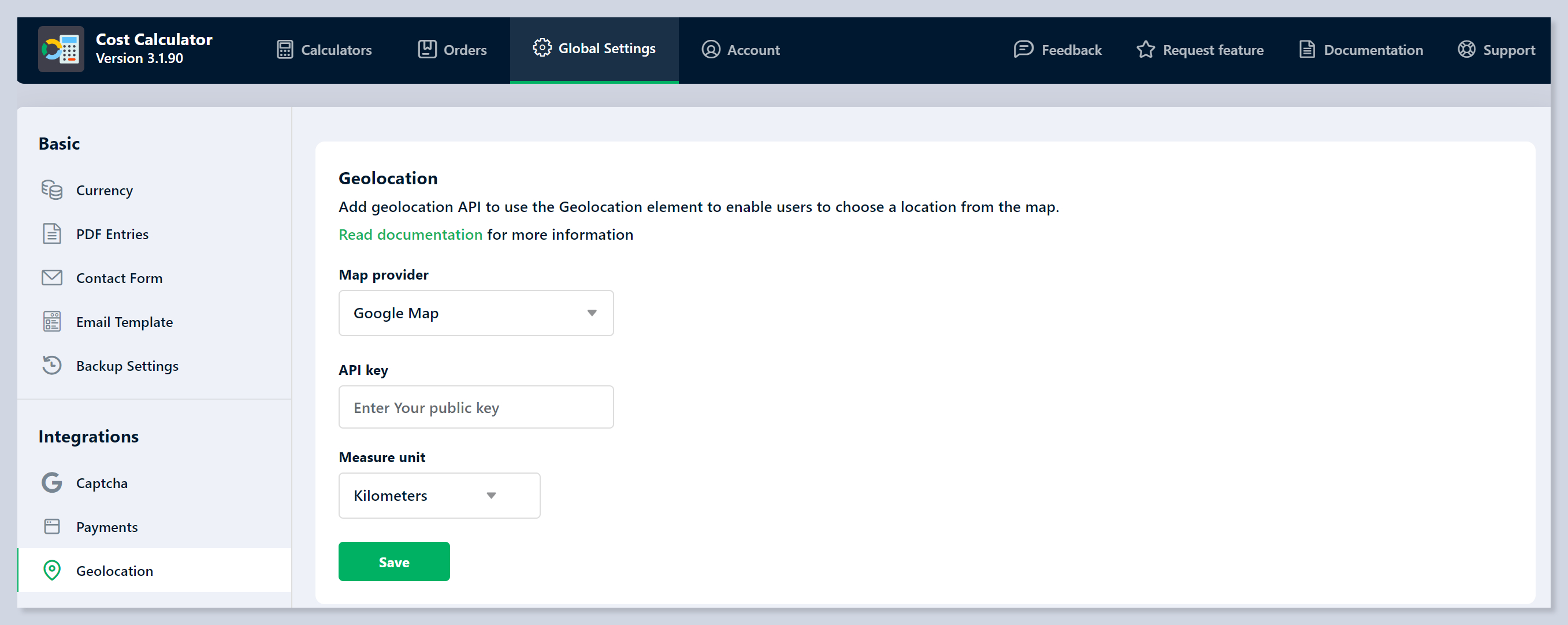 * **Calculate cost of distance:** Enable this option if you want your customers to calculate the cost.
