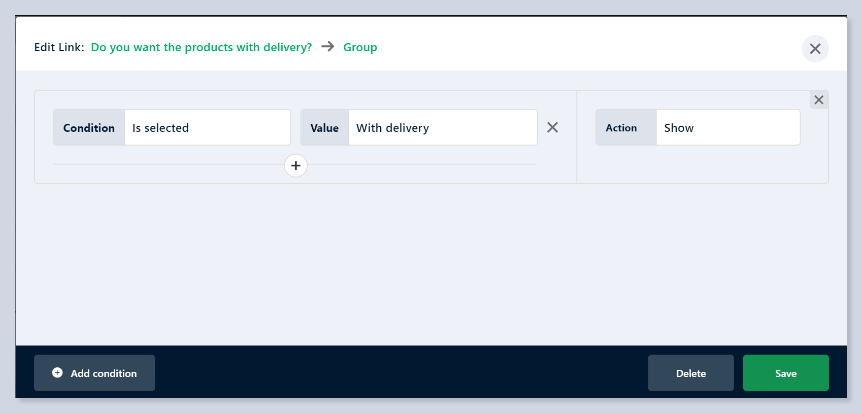 * **Show this group based on condition** - It will make the group hidden by default. Create a condition to display this group.
