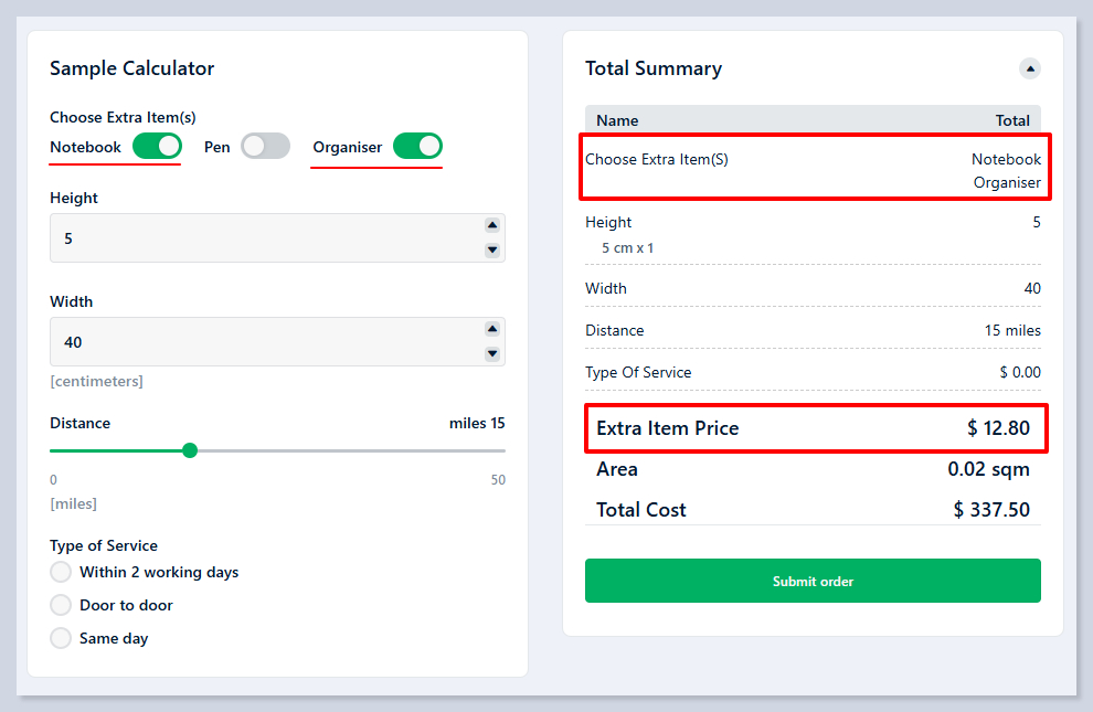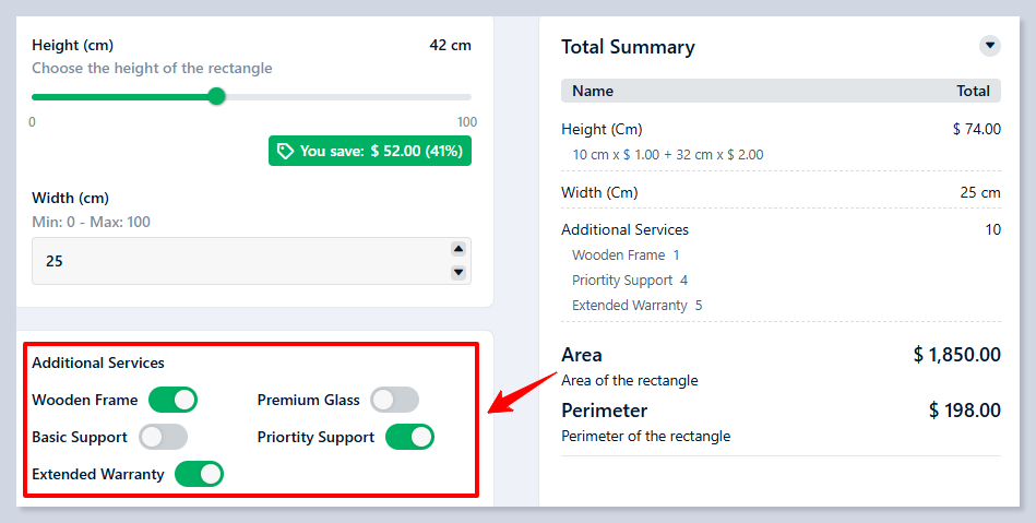 * **Option Value** - Add numeric values that will be used in total calculations when an option is selected.