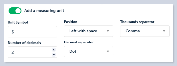 * **Number of decimals** - indicate the number of decimals in the fractional part