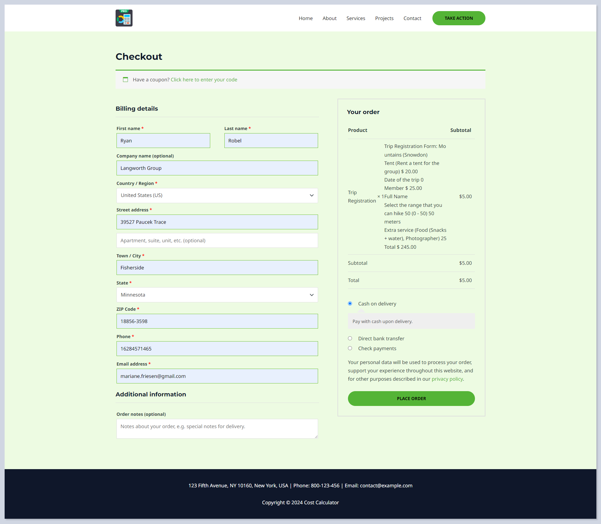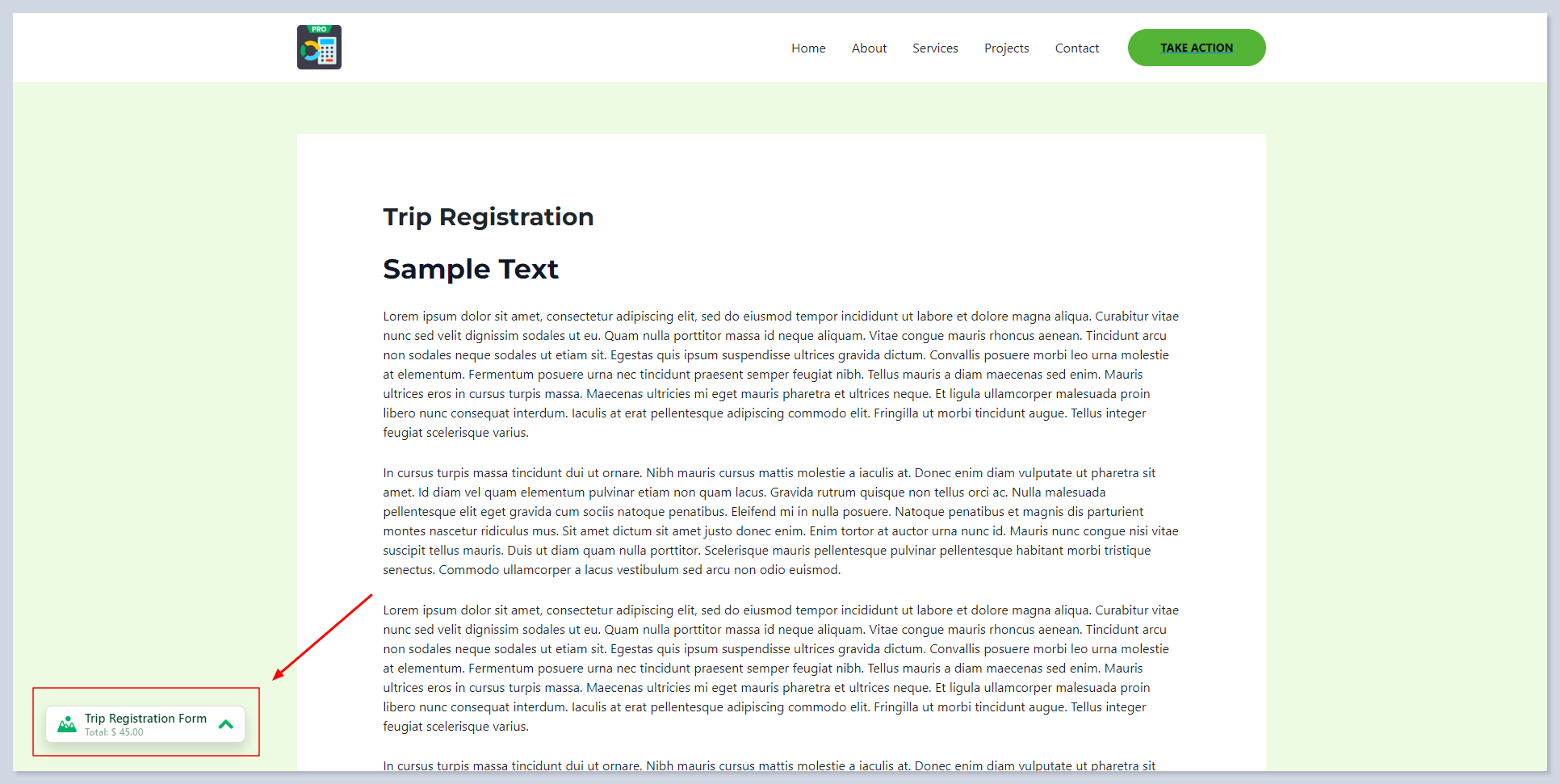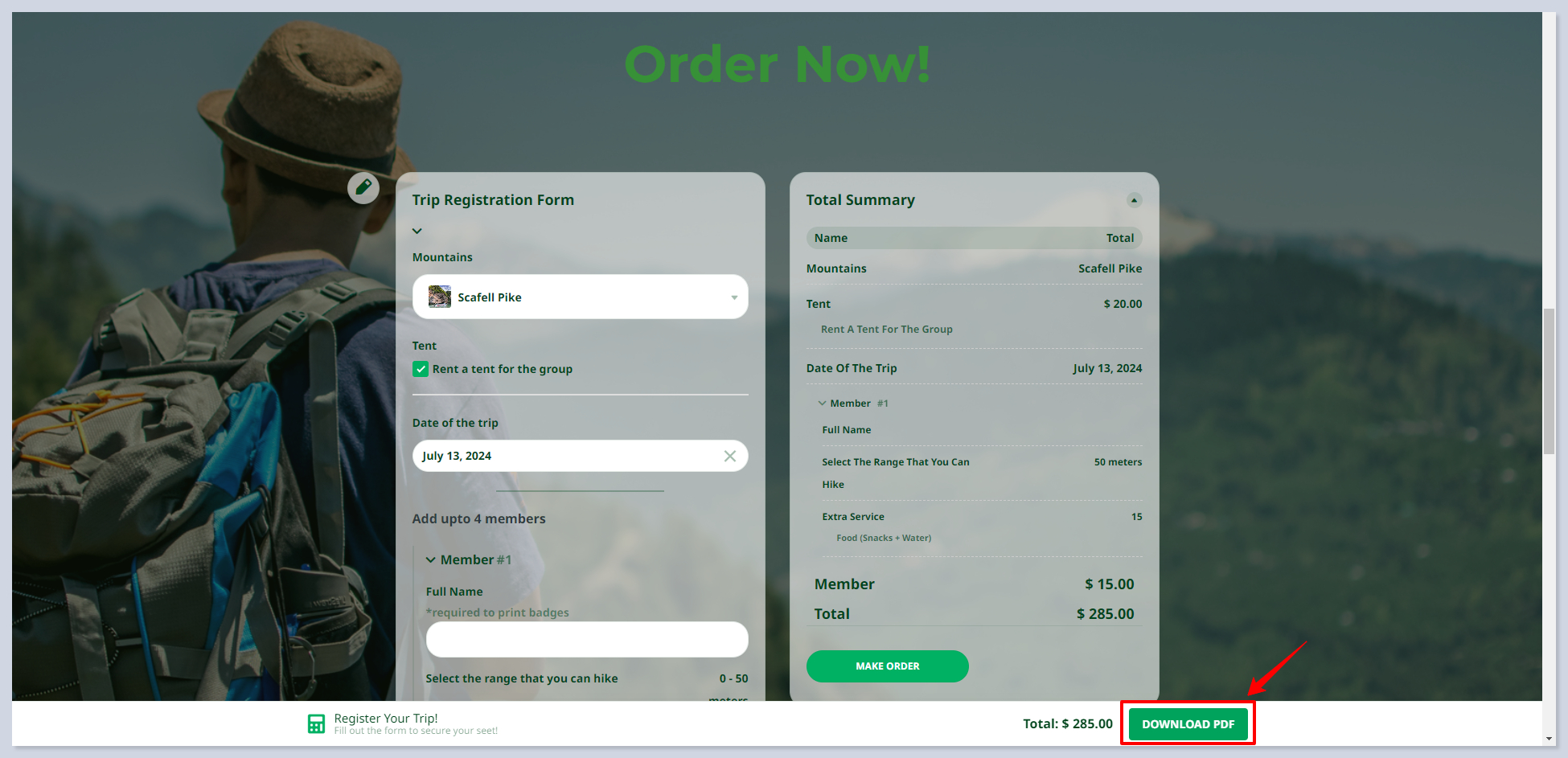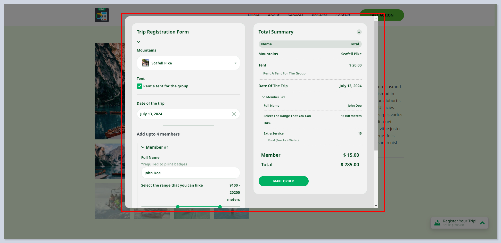 Opens an order form with calculation results and payment options in a pop-up, facilitating immediate action from the user.&#x20;