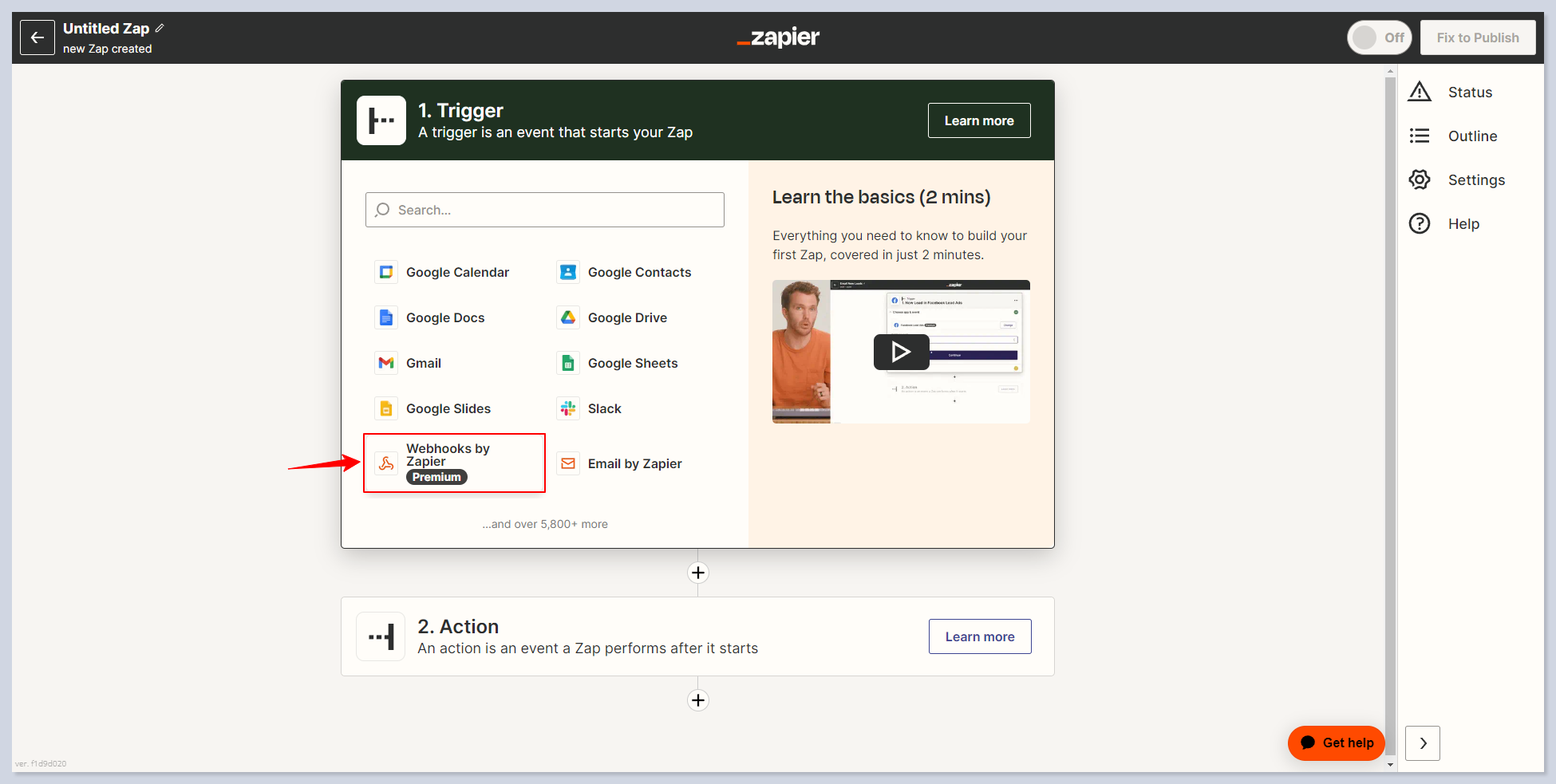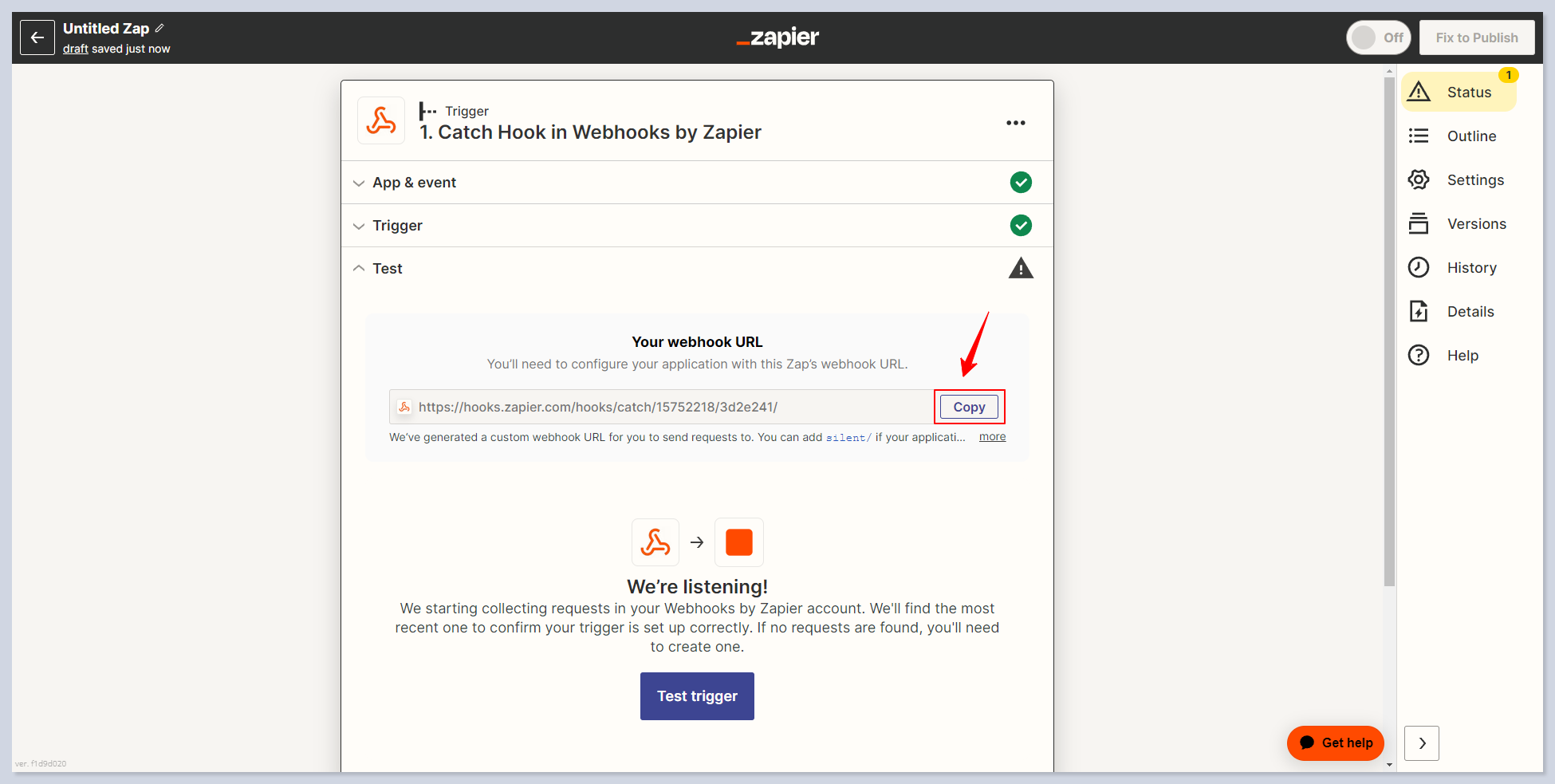 ### Step 2. Getting Webhook from Zapier
