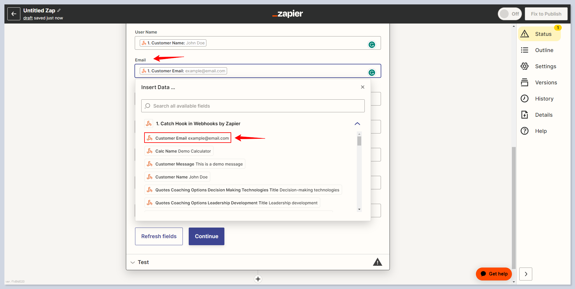 Go to the Zapier and make sure that you received demo data successfully:
