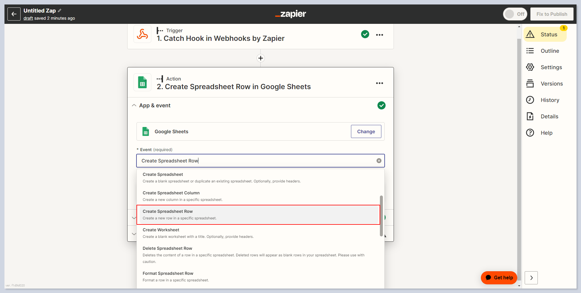 ### Step 4. Adding Actions into Zapier to send data Google Sheet&#x20;