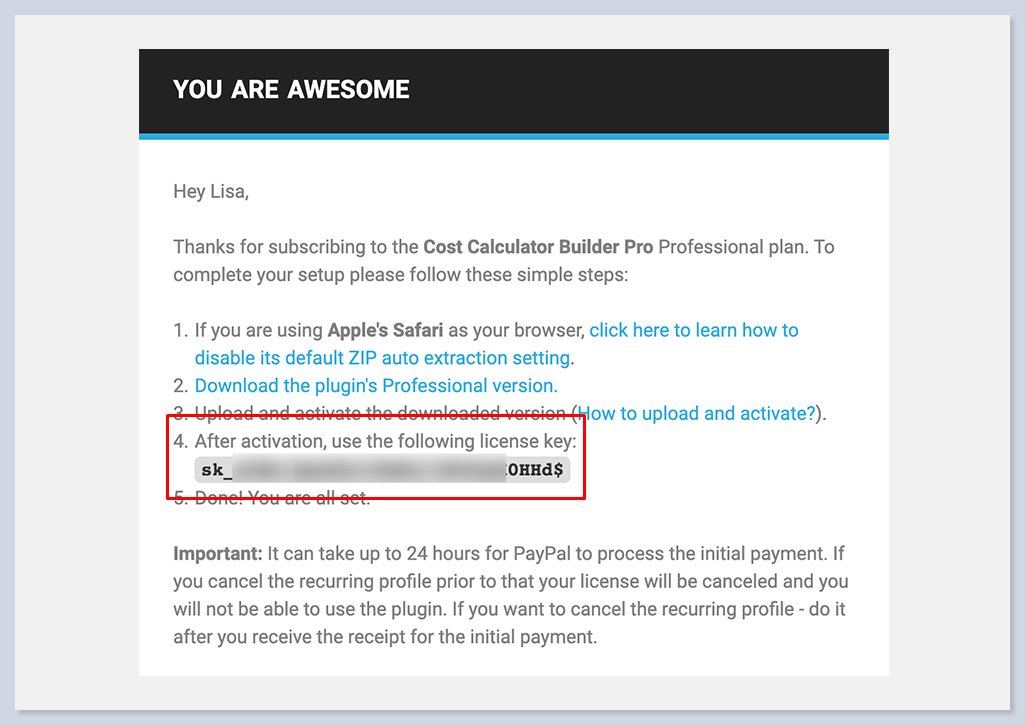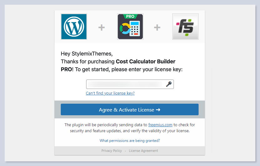 You will be directed to the activation board where you should paste the license key that you are given by Freemius: