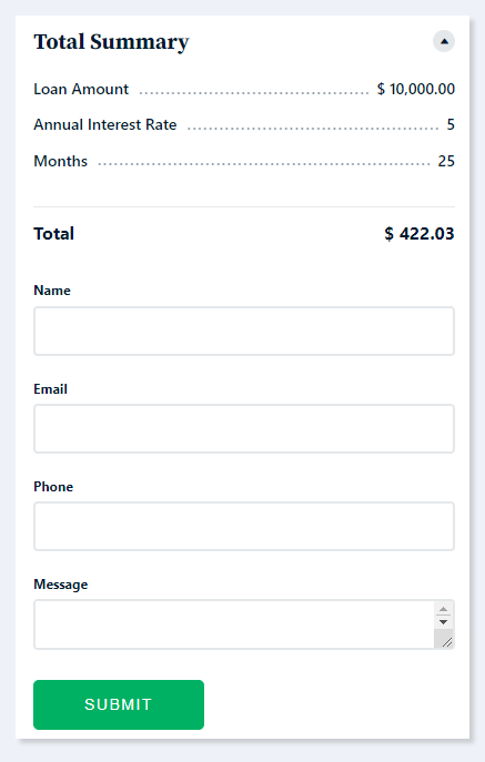 An Order Form in the Cost Calculator Builder is a feature that allows users to create a form integrated with the calculator for collecting detailed customer information and streamlining the order process. It typically works as part of a cost estimation workflow, where potential customers calculate the cost of a service or product and then proceed to place an order directly through the form.