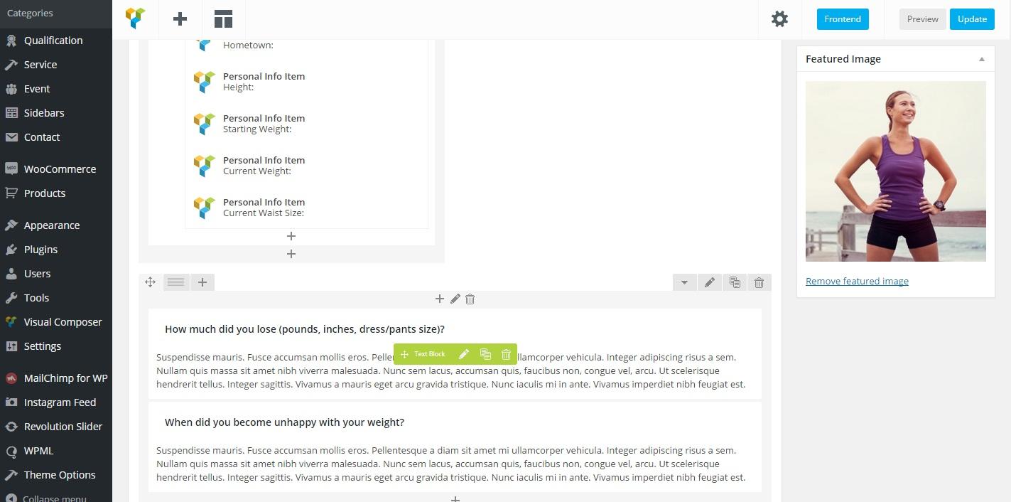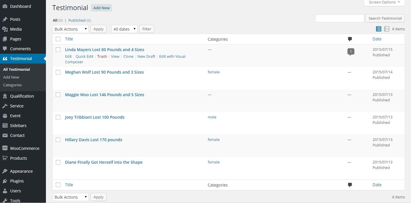 In order that you could create testimonials in one place and then use all over the site, just inserting a VC element, we have created custom posts.