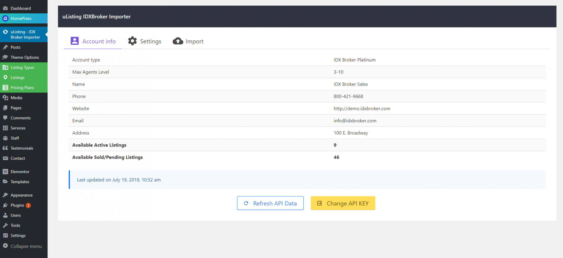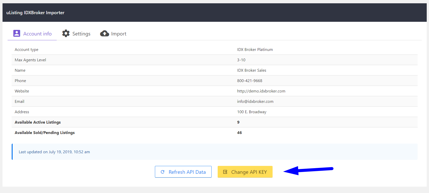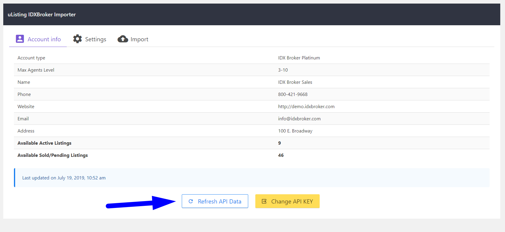 . IDX Broker Account Info; . Settings; . Import Listings.