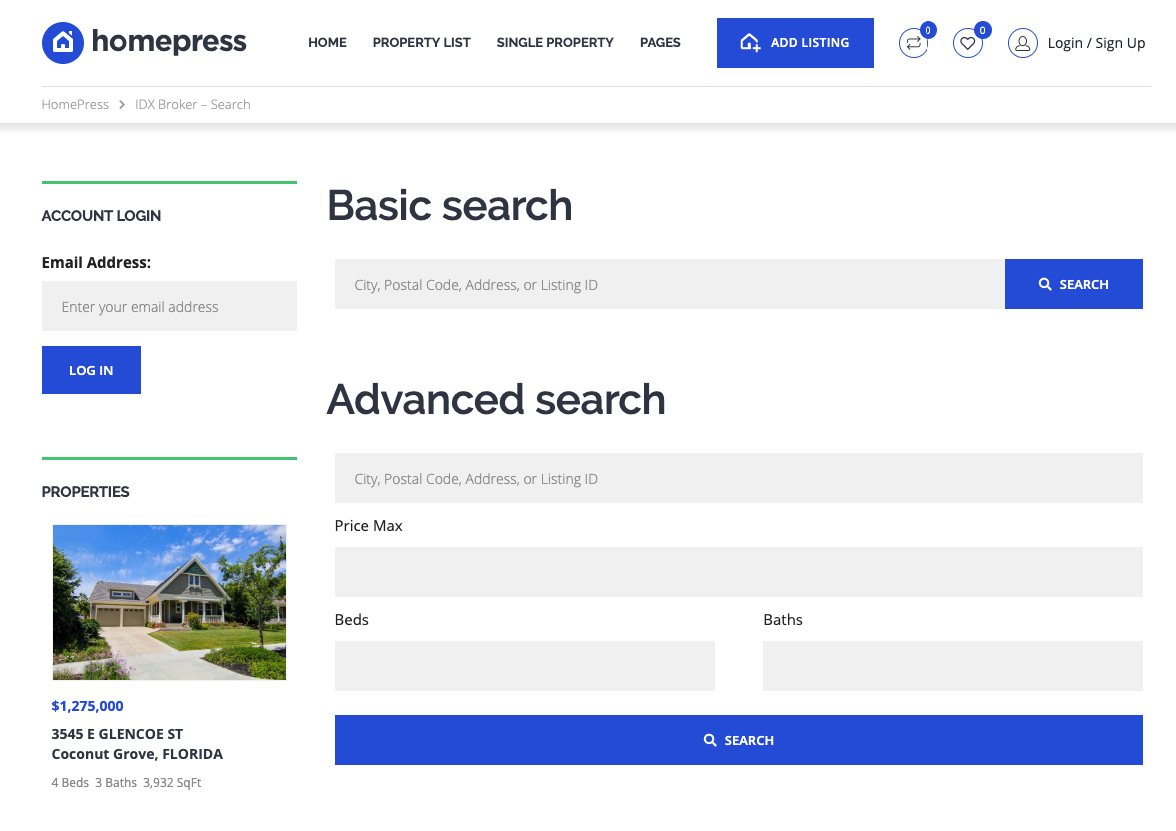Impress for IDX Broker is a plugin powered by IDX Broker which provides access to your MLS data feed. You can display that data on your WordPress site via using widgets and shortcodes.