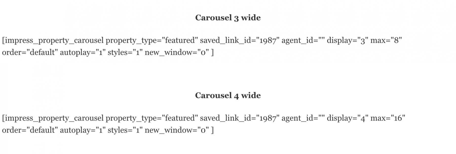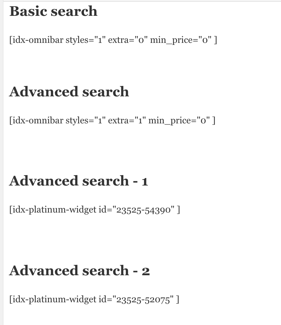 Here you can find example shortcodes - Shortcodes IMPress IDX Broker.