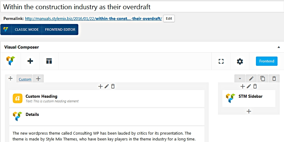 2. Design the sidebar as you would design any other page. You can also add sections to the sidebar using Visual Composer Elements and Widgets, if required.