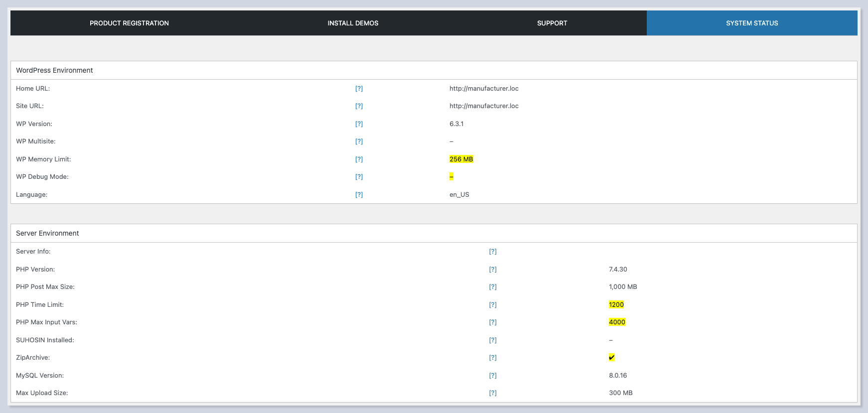 <figure><img src="https://1459969203-files.gitbook.io/~/files/v0/b/gitbook-x-prod.appspot.com/o/spaces%2F-MDPQyrgiguEnkzAK5k5%2Fuploads%2Fsf1WFNQA2mkcdW2FunZt%2FSystem%20status%20%E2%80%B9%20Manufacturer%20%E2%80%94%20WordPress.png?alt=media&#x26;token=91badbde-9586-4197-8b09-d997a4618dfb" alt=""><figcaption></figcaption></figure>