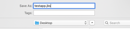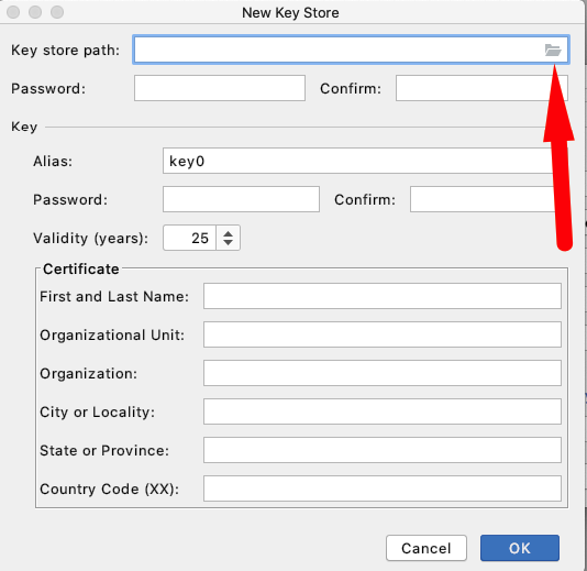 Select the folder where the Key will be stored, create new jks