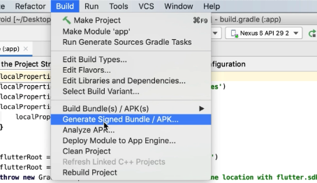 For this, you need to open Build > Generate Signed Bundle / APK…