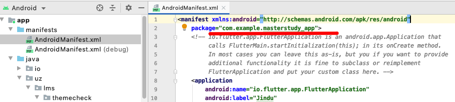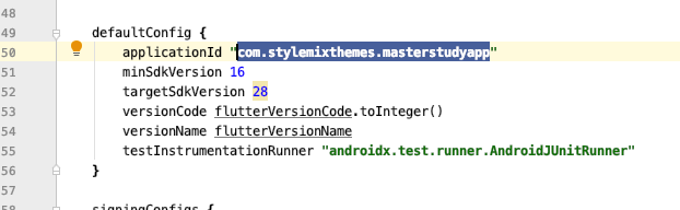 Find the 50th line and change “com.stylemixthemes.masterstudyapp” to your package name.