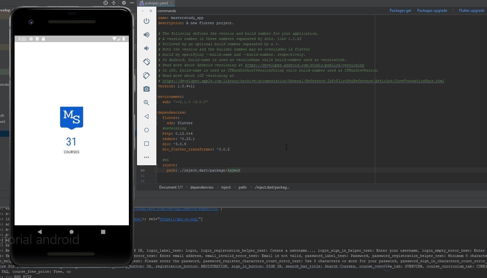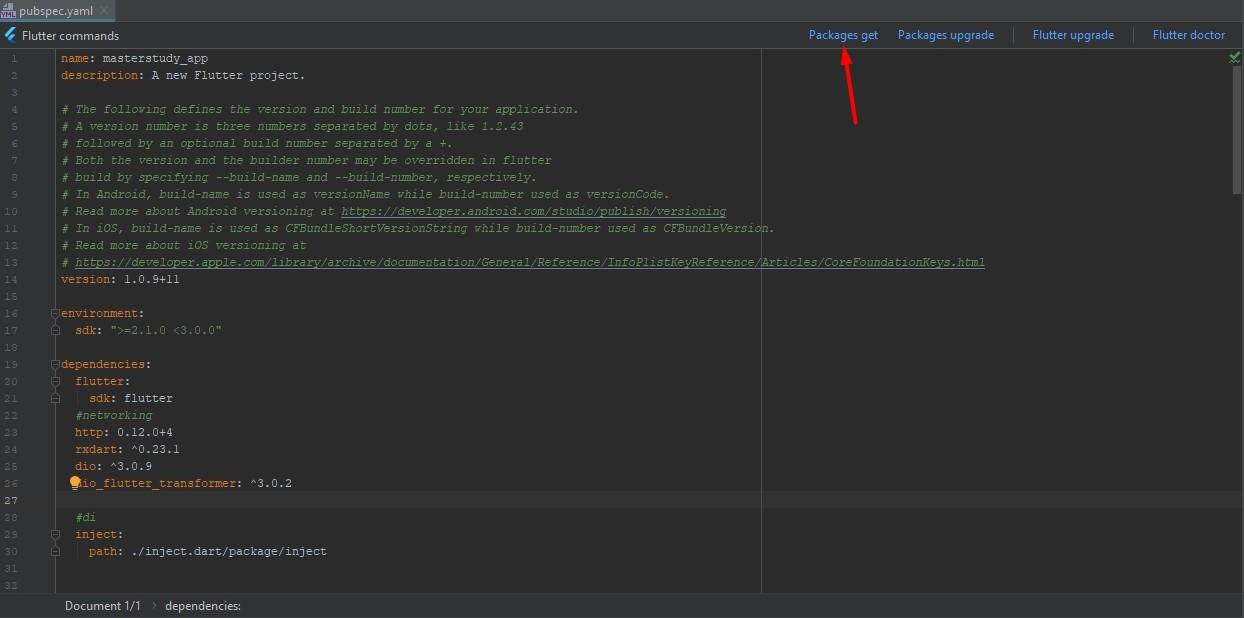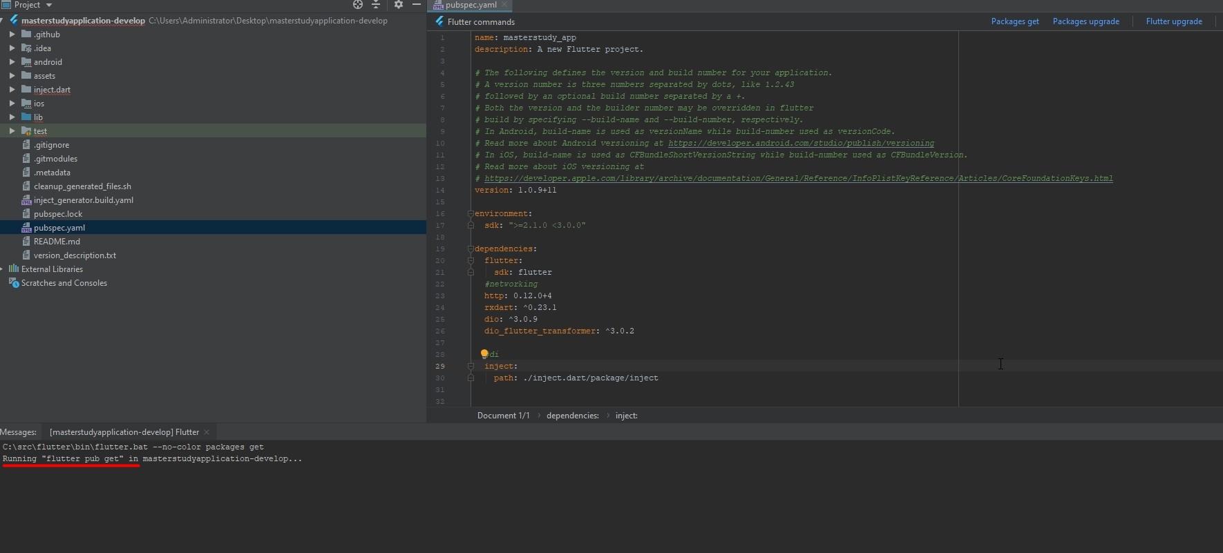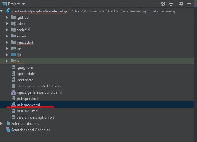 Open the pubspec.yaml file. Click on your masterstudy project then find the file pubspec.yaml.