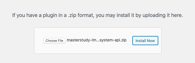 Your work will start with the installation of several items. First, you need to install MasterStudy LMS API Plugin.