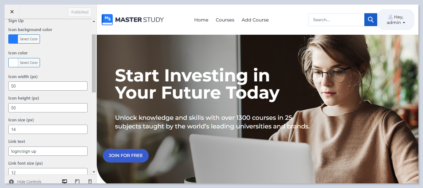 * **Icon Size (px)**: Adjust both the width and height of the sign-up icon together in pixels.
