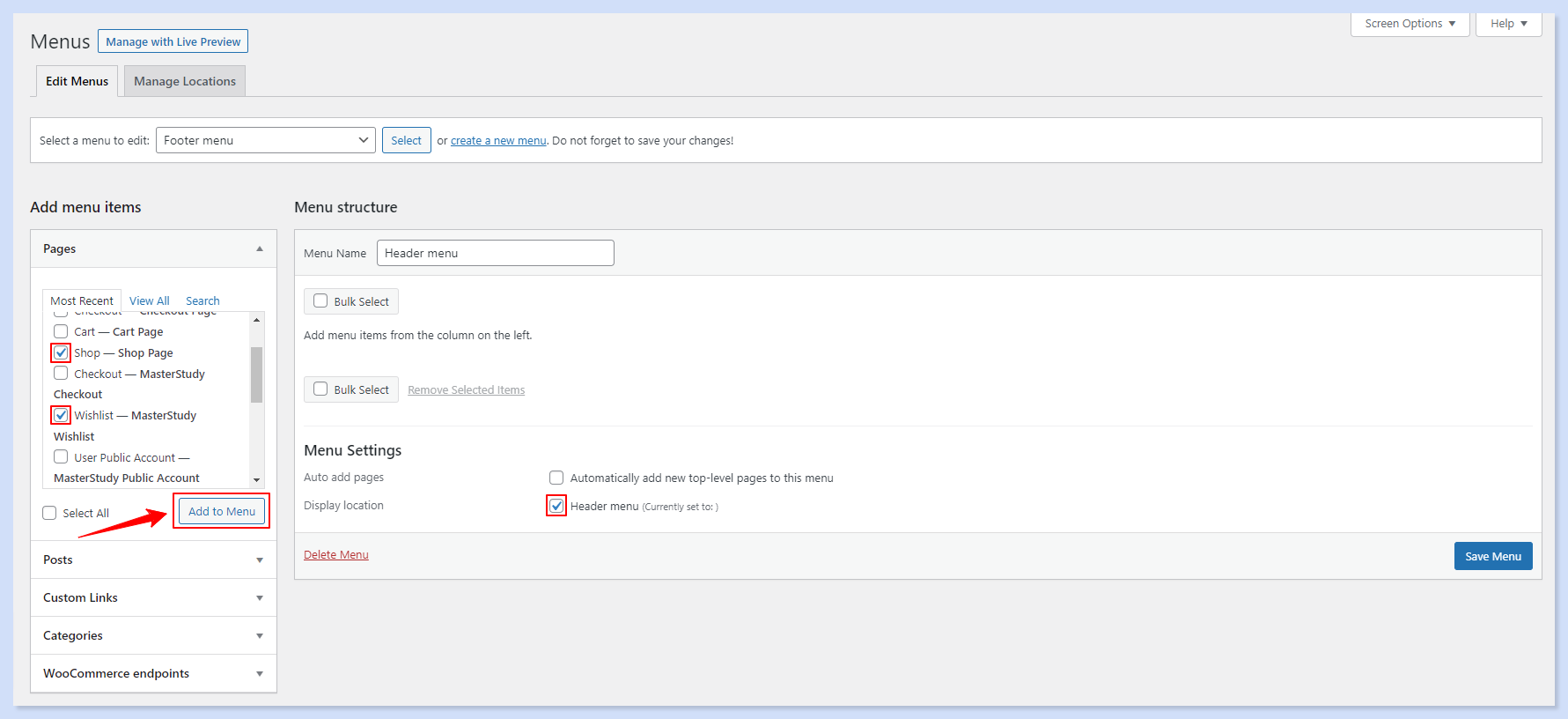 Simply select the categories you want to add to the menu, and then click the **Add to Menu** button.