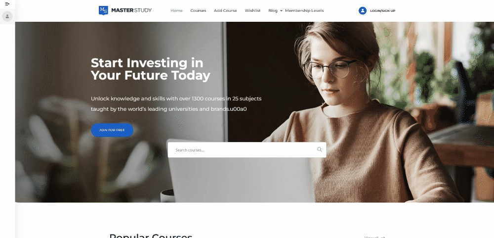 The **Courses Carousel** **Widget** is used to create the custom slider with LMS courses.
