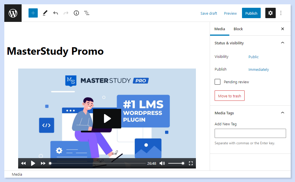 **The media hub** is a more flexible way to add media to your lessons. It allows you to save audio and videos which you can later use in any lesson, post, or page on your site - either through the Block Editor, a page builder or by using a shortcode.