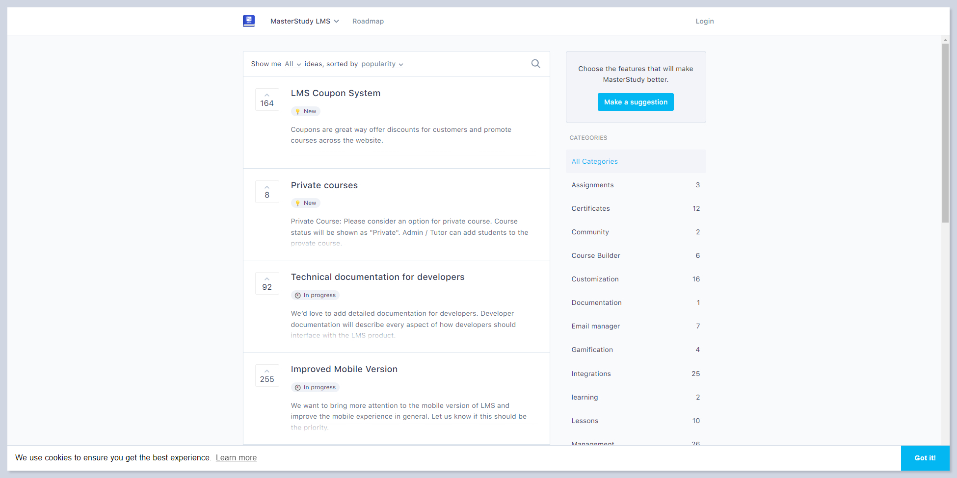 You can influence the **MasterStudy LMS roadmap** by taking part in our [**Vote for Next Feature**](https://stylemixthemes.cnflx.io/boards/masterstudy-lms).