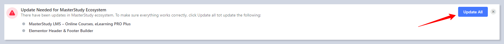 <figure><img src="https://691205473-files.gitbook.io/~/files/v0/b/gitbook-x-prod.appspot.com/o/spaces%2F-MDTL6WUldKvxQaP8jzz%2Fuploads%2FrA3y4HvHpeprYVYwPiDP%2Fimage.png?alt=media&#x26;token=a33066cd-c95d-4bff-87d7-207d43434dc0" alt=""><figcaption><p>MasterStudy Ecosystem Update Notification on Plugins Page</p></figcaption></figure>