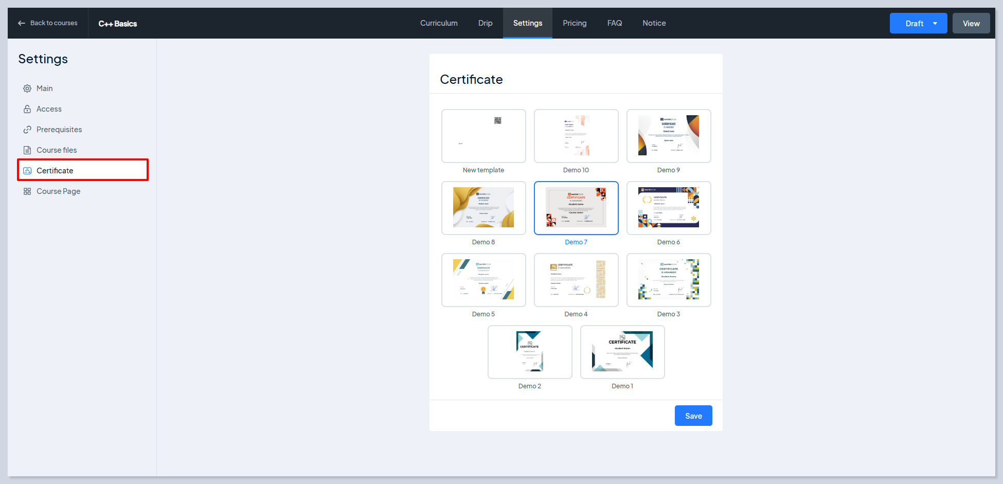 * **Do not provide certificate** - Disables certificate generation for course completion