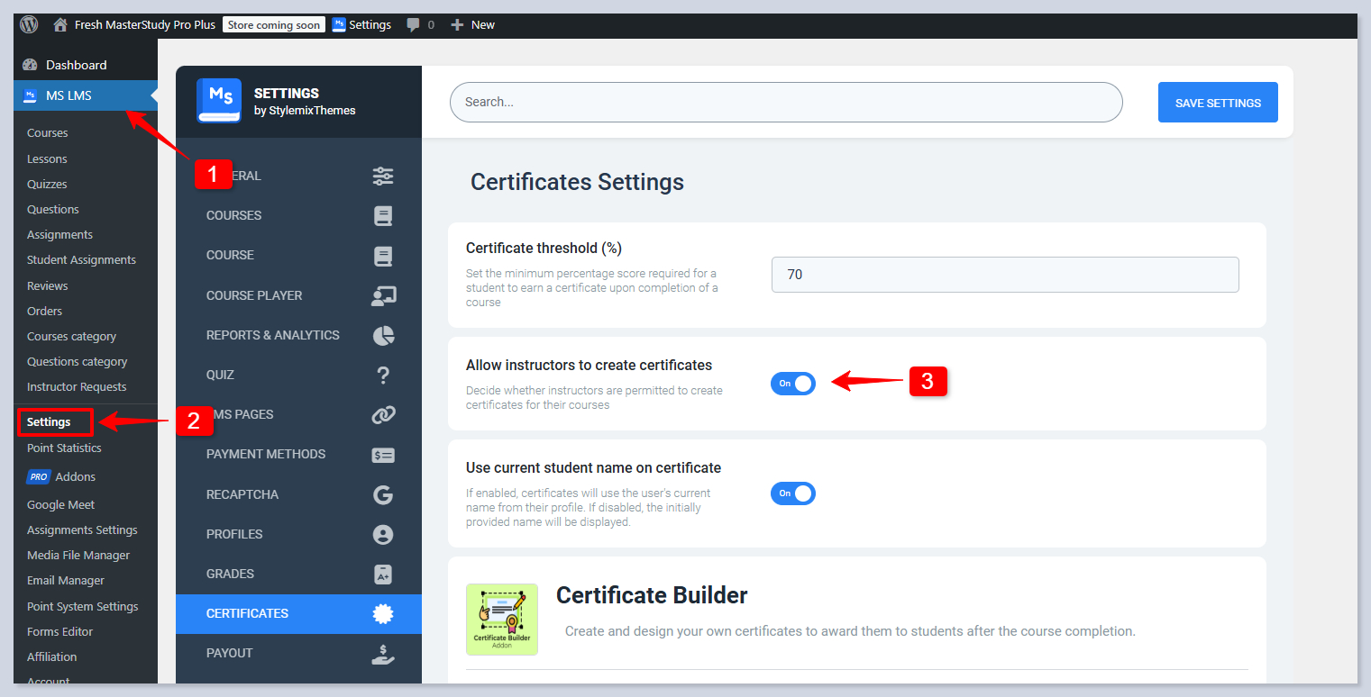 [^1]: WP Dashboard > MS LMS > Settings > Certificates