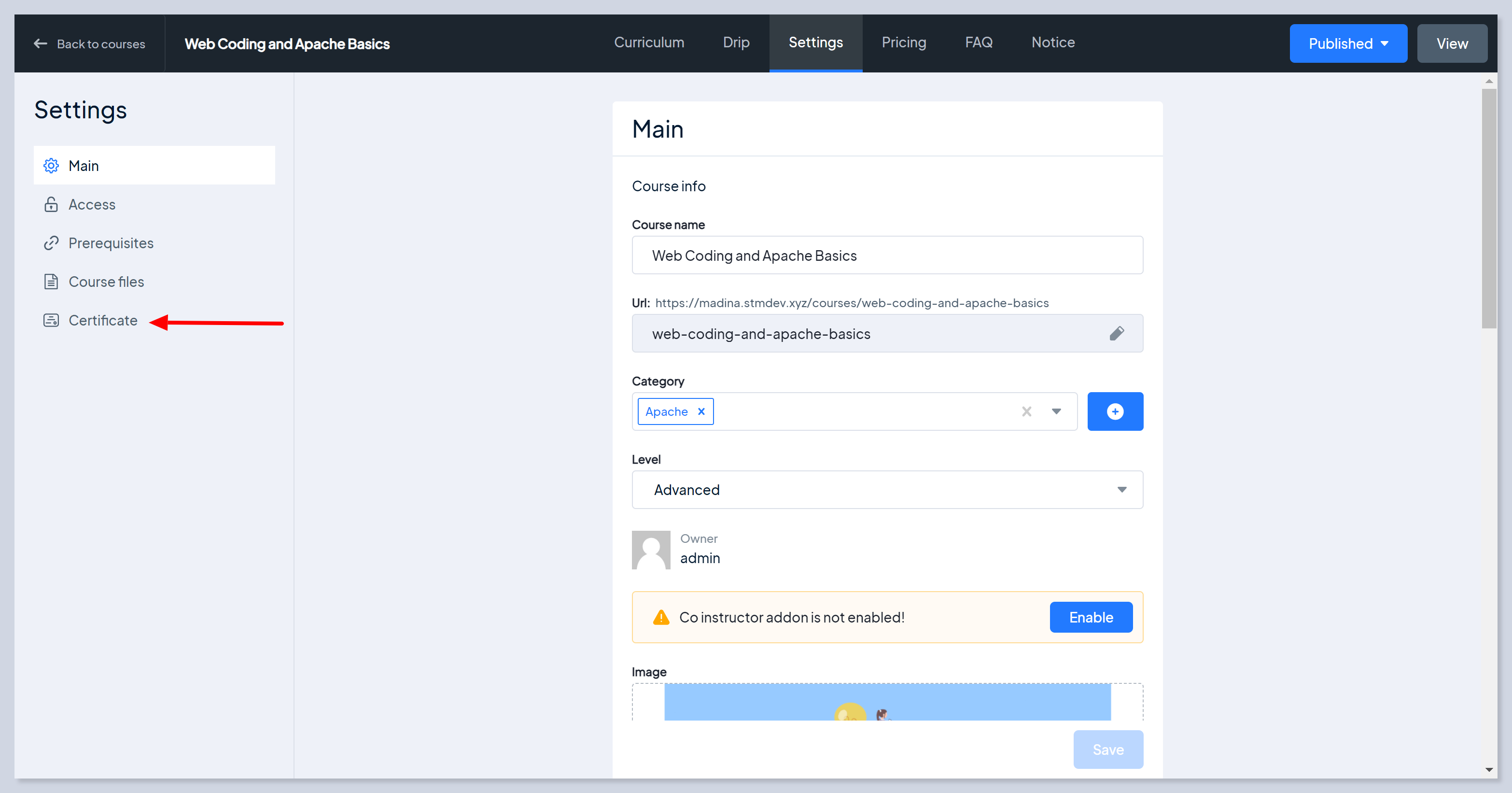 Save changes. Students of the course will get this certificate after completion