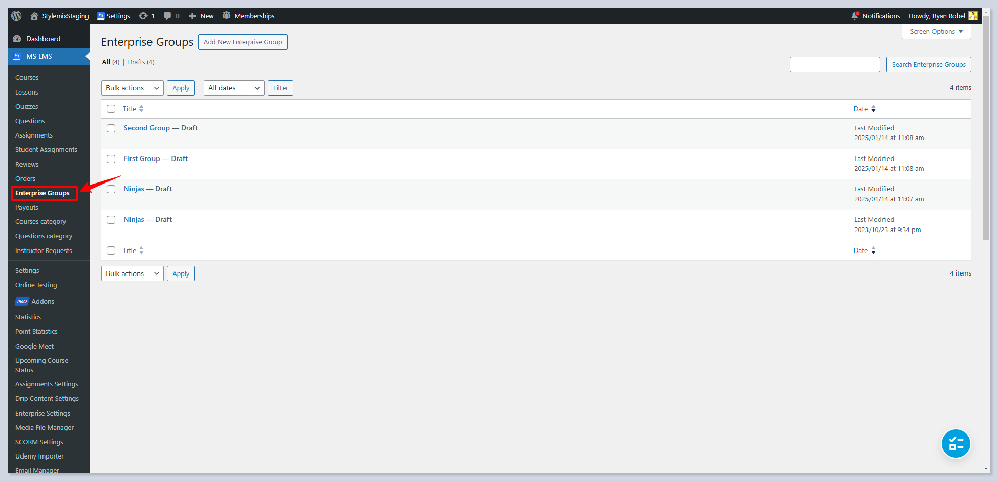 To activate the **Group Courses** feature, follow **MS LMS > Pro Addons,** find **Group Courses** Addon, and enable it.