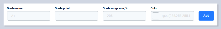 * **Grade Range min, %** - specify the minimum range value for the new grade