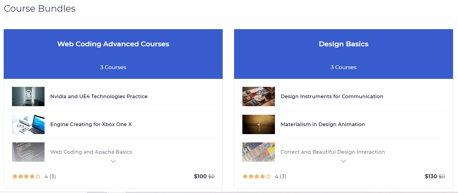 From the students’ profiles, the bundles look like it’s shown below. Users can add bundles to the cart and purchase them.