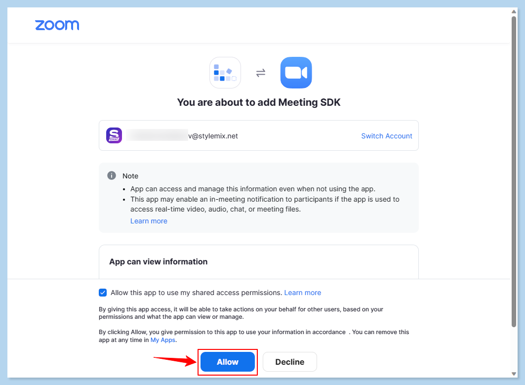 Next, it is required to add the domain (example: <https://your-domain.com>) to the "**OAuth allow list**" to make the Metting SDK secure: