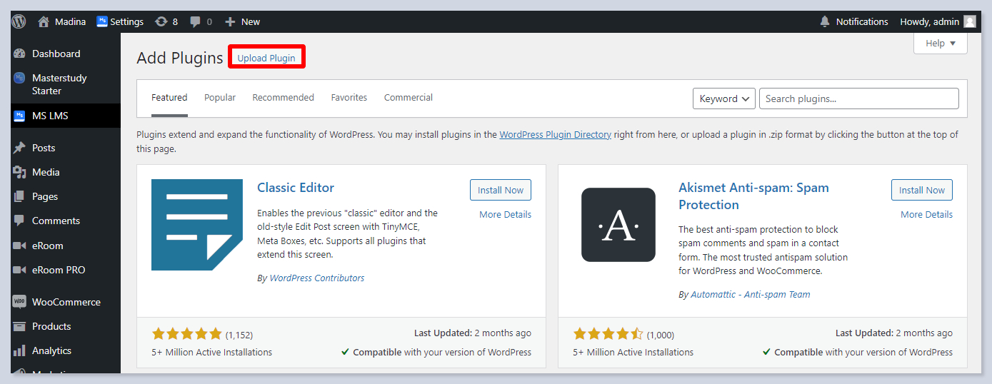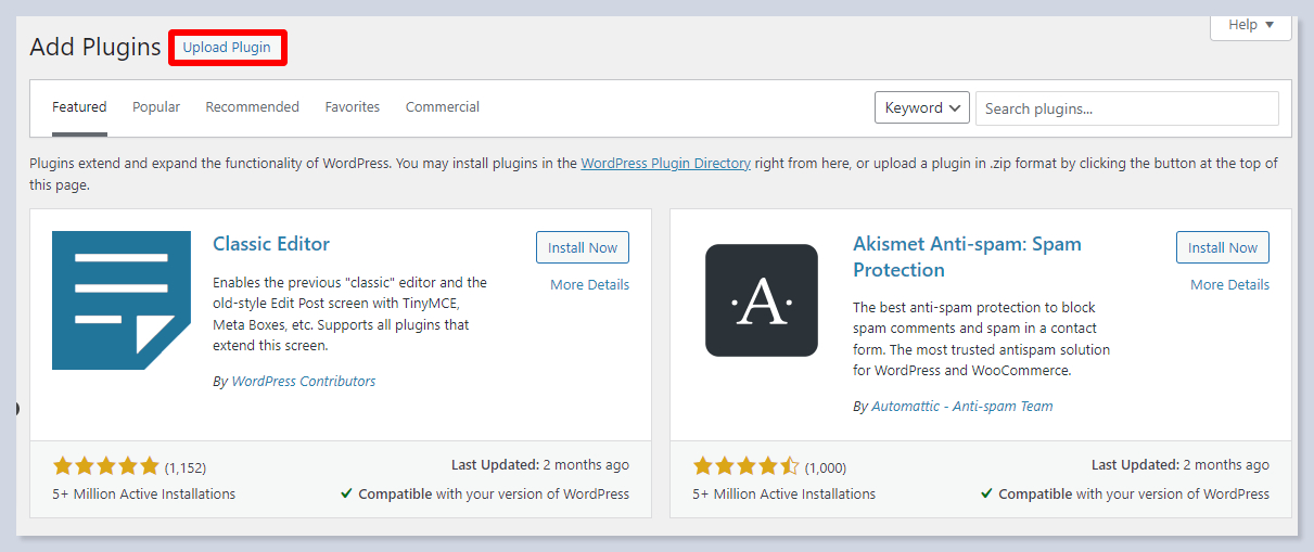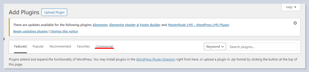 Go back to your WordPress dashboard, Add New Plugin section and click on the **Commercial** section.