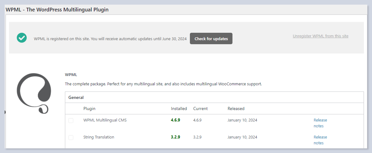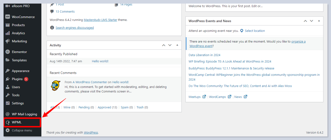 On the left sidebar of your WPML dashboard, find the WPML plugin and click on that.