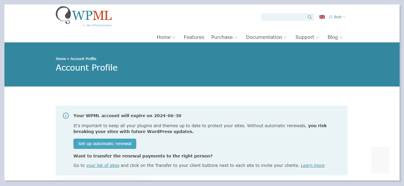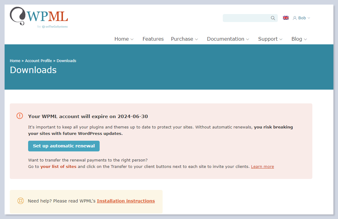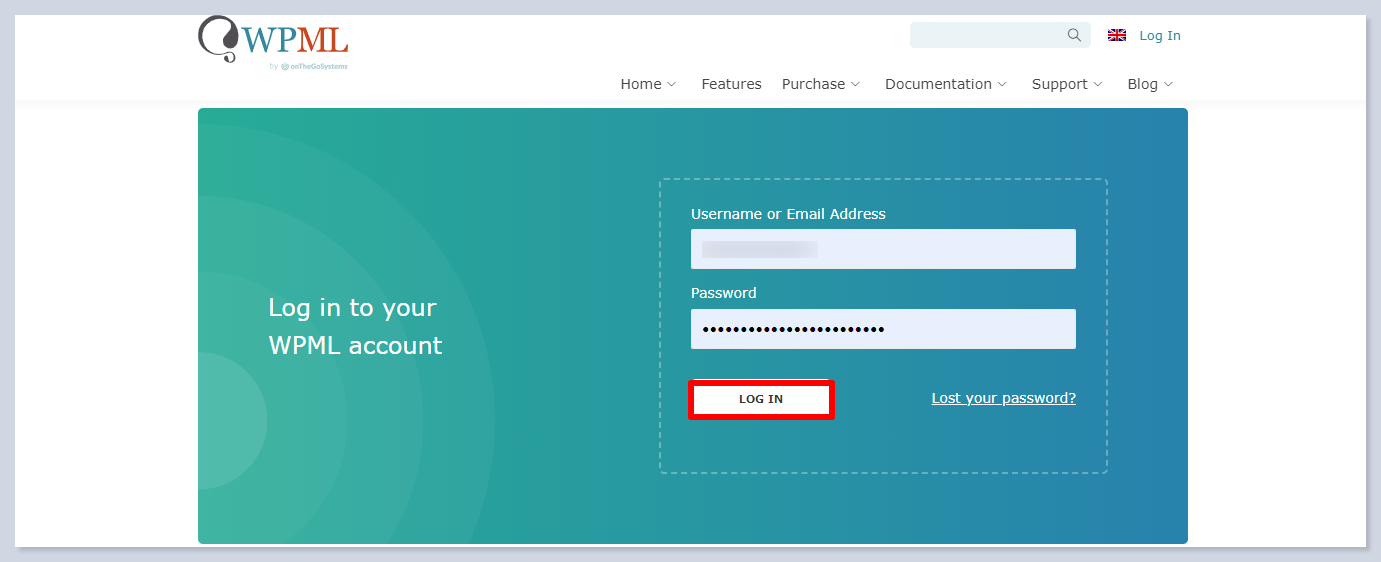 1. Go to the [WPML](https://wpml.org/account/) site and log in with your credentials.