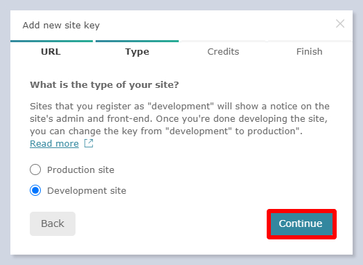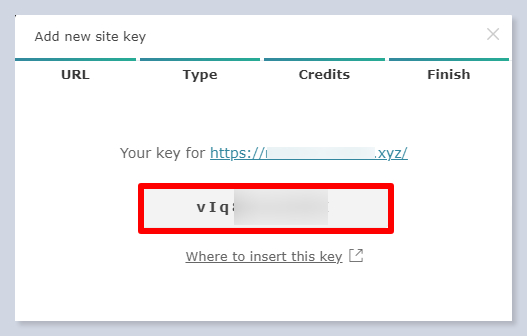 In the final stage, you'll get a key for your site. Cope this code for the next step.