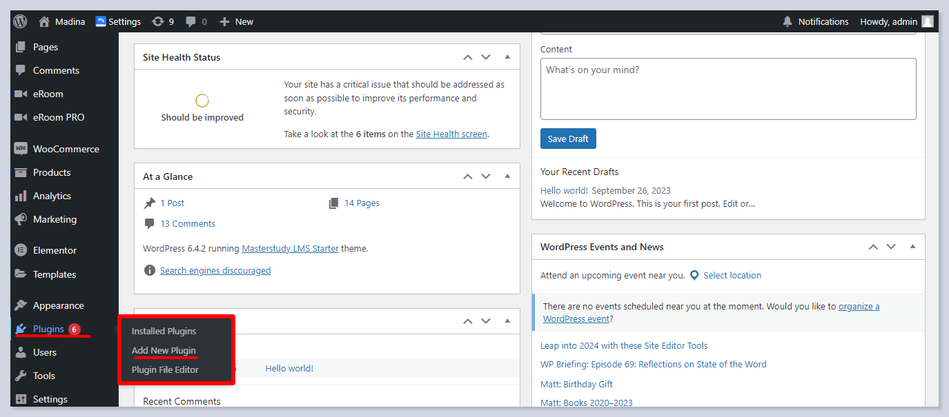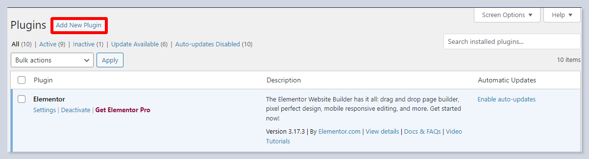 6. Head over to the **Plugins** section on the left column and click on the **Add new plugin**.