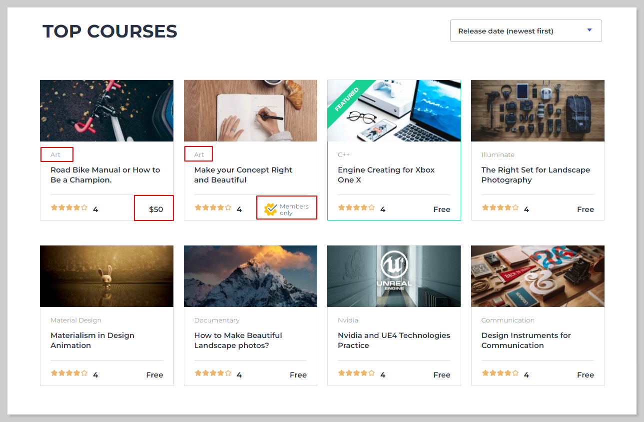Now students can enroll in the course via the subscription plan. To access the course they need to click on the Get Course and select a plan from the drop-down menu.