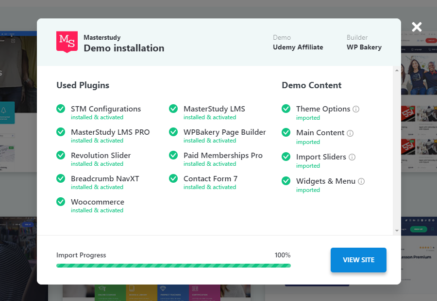 MasterStudy comes with the One-Click Demo Import tool so easily start with content in the right way.